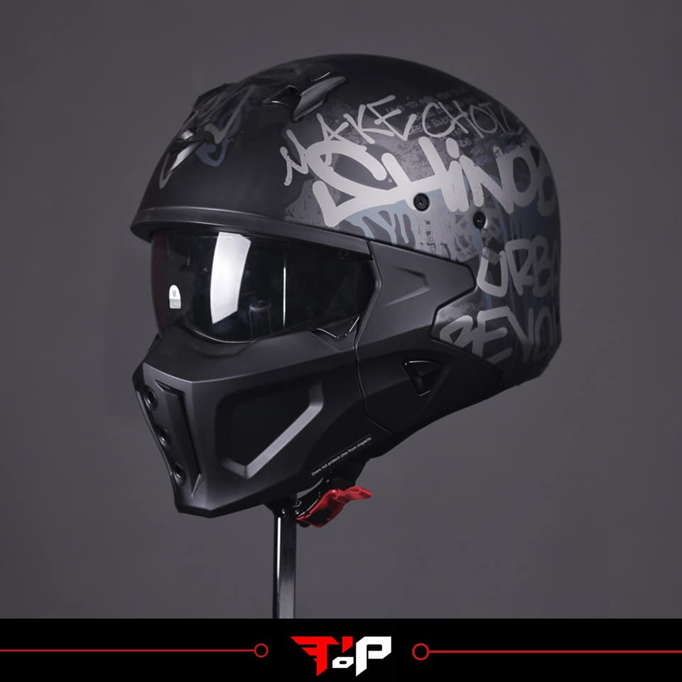 The transformer technology can be activated via two side controls. Trying out the Exo Combat-EvoDOT rated only as open face helmet. Expert Gear Advice From Riders.